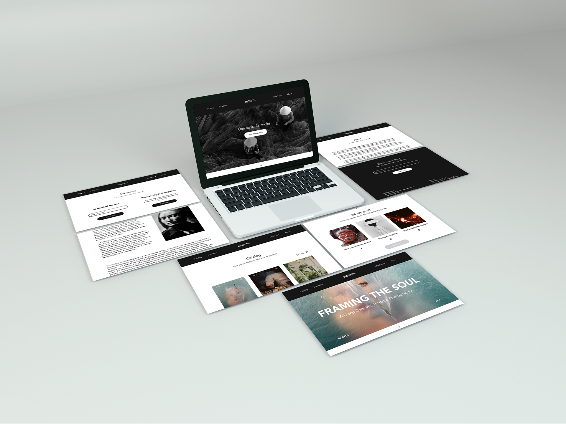 Website design for a fictional company called INDEPTH. They publish free to read magazines every months on topics picked by readers. The magazines provide the complete story about a topic.